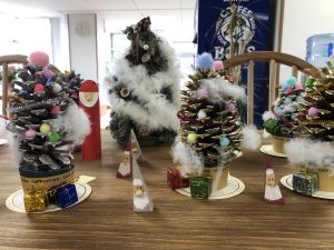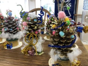 松ぼっくりを使ったクリスマスツリーも素敵でしょ💛入所者様の工夫がいっぱい詰まっていて、一つ一つが可愛いです。